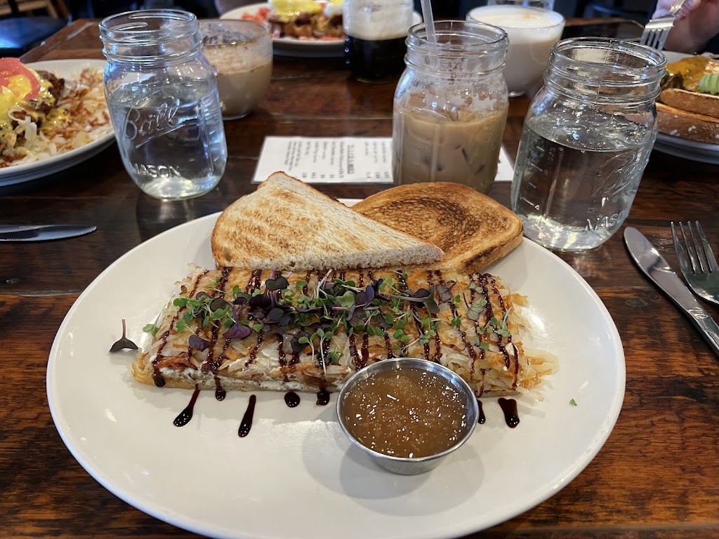 I came looking for reviews that mention anything about their hashbrowns here, and to my suprise I didn't find anyone mentioning how unusual the hashbrowns were at toast and co..they aren't like your traditional hashbrowns, potatoey, or crispy,.. nothing along those lines... my husband and I best described them as almost like a Spanish rice, the hasbrowns were very soft and seasoned like an Enchilada sauce or Mexican rice, even the texture was very similar to a rice.. other than that, it's a smaller menu , cute decor but the place is small and tables are to close for our preference,unfortunately we won't be going back due to us liking more of a traditional style eggs and hashbrowns.. good toast tho. Thanks