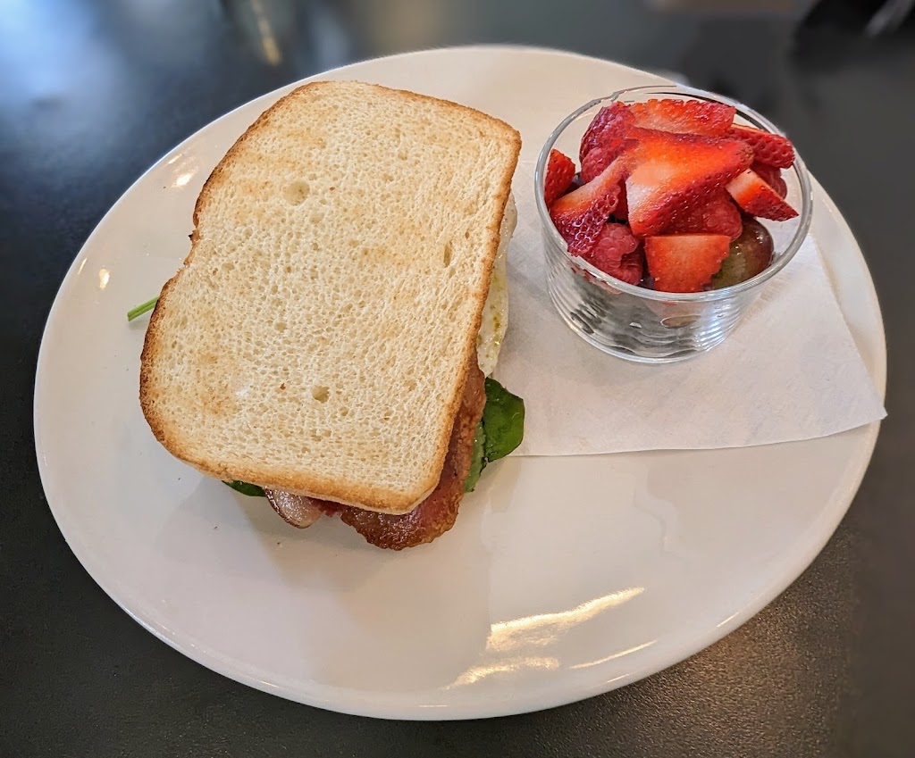 Visiting from out of state and decided to stop in for a quick lunch as it was 40 minutes from closing. Staff was welcoming and reassured me there is no rush and to order and enjoy at my place. I ordered the Morning Sammy and it was fantastic, the fresh avocado made the sandwich for me. The coffee was mild and tasty and they also gave me a to go cup as well. Plenty of seating both tables and a smaller bar area. A menu with a variety of choices as well as drink specials and options of beverages. I'd recommend stopping in I'm glad I did.