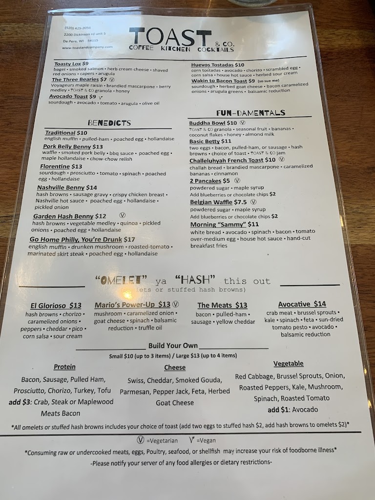 One of my go-to places! The food is fantastic, w jams made in-house. Toast & Co never disappoints. Coffee and cocktails are unique & so yummy. Bonus- they’re open on Sundays— Not many of the breakfast places are around GB.
