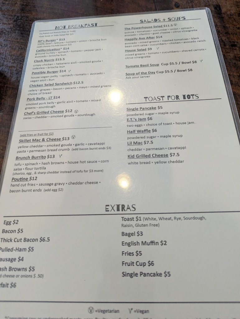 I love this breakfast joint. It has a cozy vibe and a helpful staff. The menu is amazing and it's always changing. Never dull!