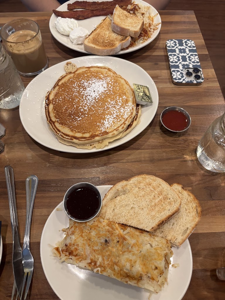 Excellent service from all of my visits. Pancakes are basic but delish. The short stack is two huge pancakes. You probably don't need the tall stack unless you're starving. The French toast is light, airy, and flavorful. Their espresso drinks and coffee are excellent. They even made me a cortado, which was not a listed drink on their menu, when I asked for it! Prices are really low for how good this place is. You should try this place for breakfast or brunch, it won't disappoint.