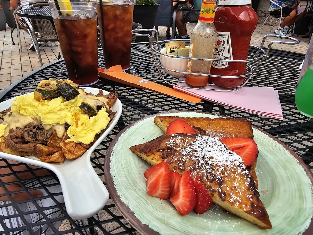 The place was great for breakfast. Had the special pigs in a blanket and hubby had the barbacoa skillet with French toast. I had the Maui waui mimosa