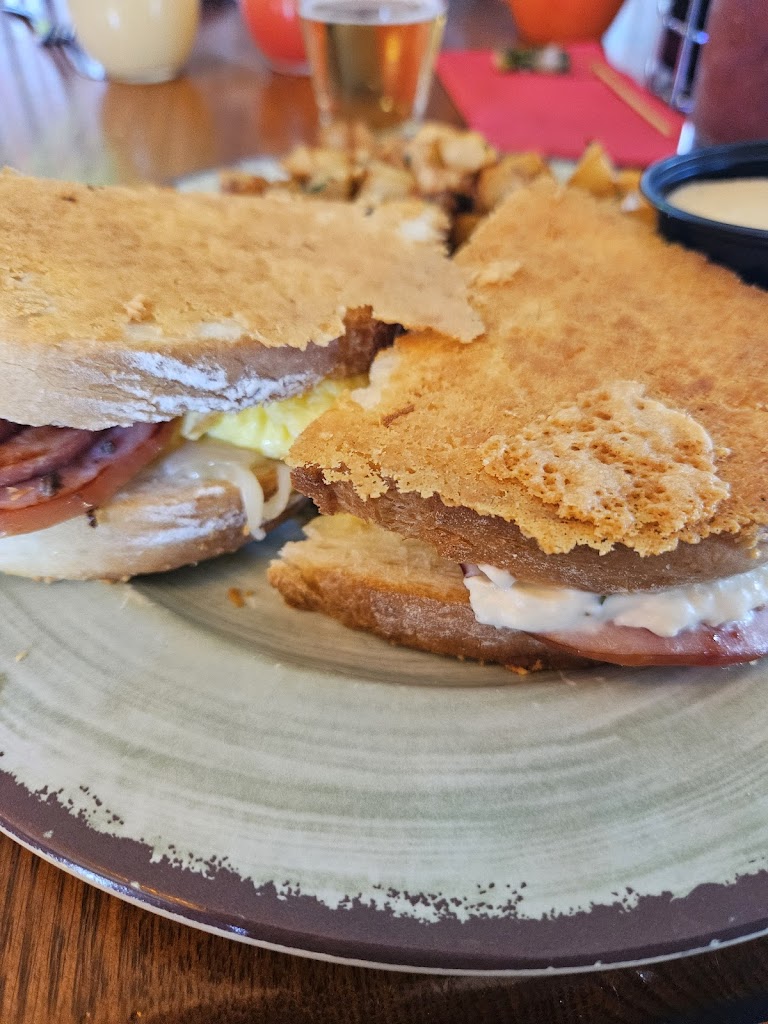 I had the croissant sandwich, it was pretty mediocre. The croissant was a little hard, and only had one little measly piece of bacon that was ripped in half on it. The scrambled eggs on it weren't really scrabled, it was more like a little frittata on there. I also had a side of chorizo biscuits and gravy. They charged me for a regular entree, and it was supposed to come with an egg, but it didn't. Not to mention, I waited about 20 minutes for the food when there were only about 4-6 tables. Maybe staffing shortages, not sure.