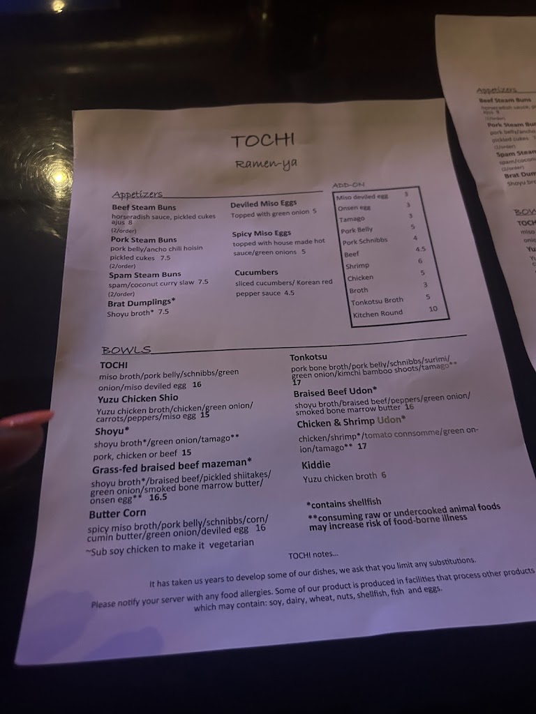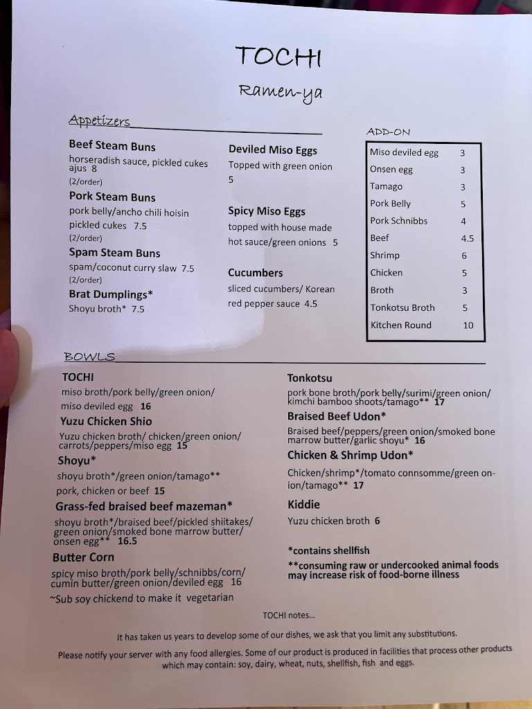 Who doesn’t like Tochi Ramen?! Staff is wonderful. Ramen is out of this world full of flavor!