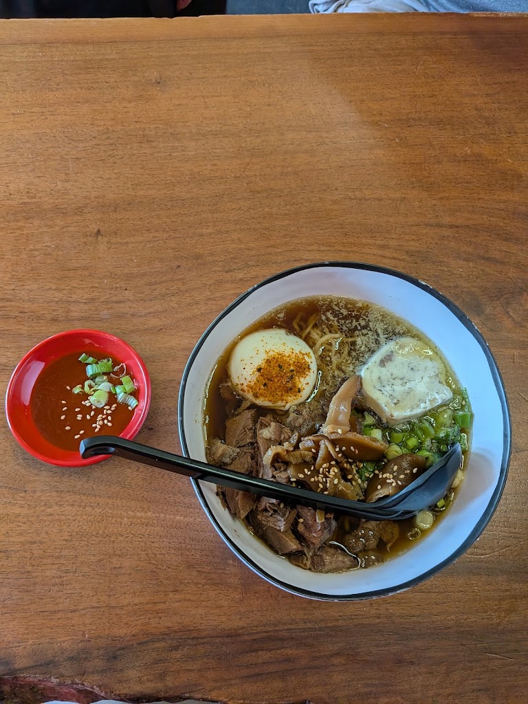 Excellent bowl of ramen. I ordered the braised beef mazeman that a local suggested and it was delicious! The spicy miso eggs were done in the blink of an eye. Will be back if we’re in town again!!