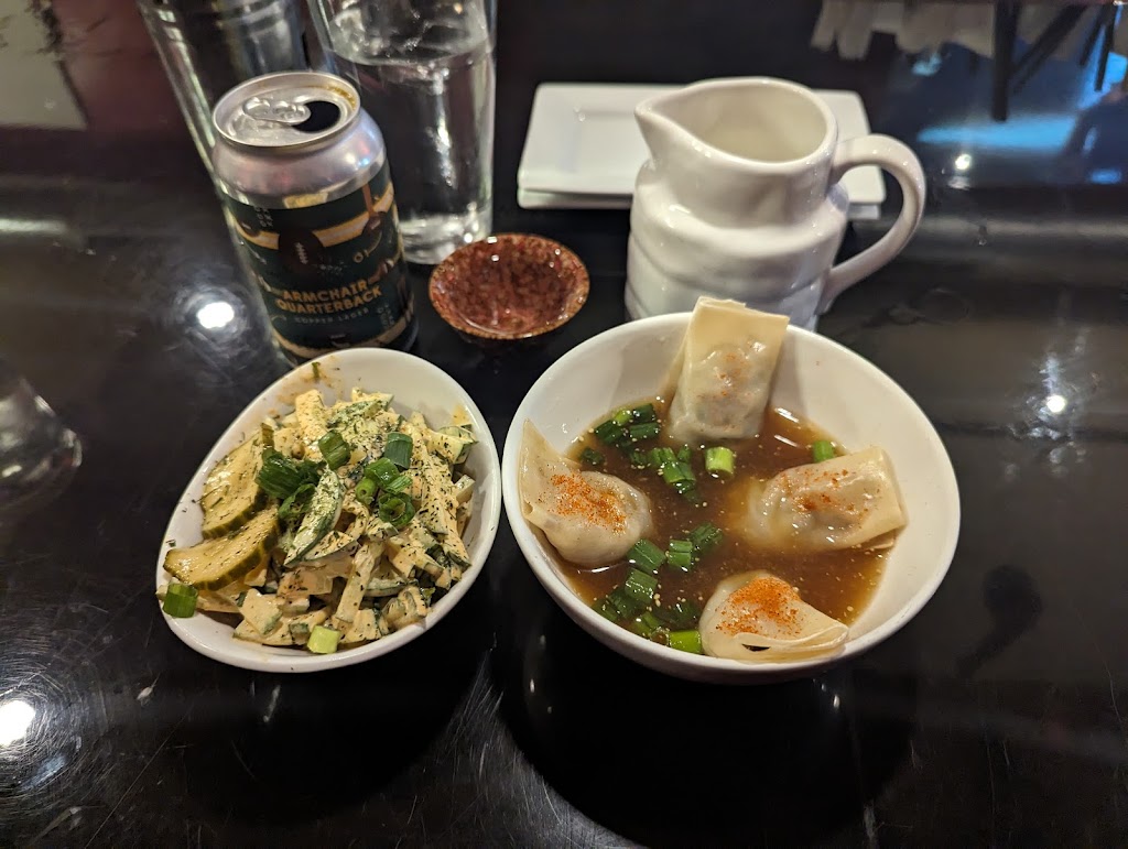The tonkotsu ramen is fine as long as you aren’t expecting it to be authentically Japanese. The “cukes” on the other hand is pretty bad. Basically a mix of pickles and cucumbers covered in spicy mayonnaise, like what you would find on a burger or sandwich.