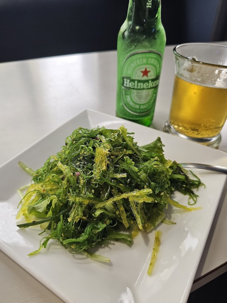I arrived at about 12:30 p.m. and I think I saw a couple of other customers otherwise I was the only one. Seated right away with a pleasant server. Order the beer and looked at a fairly extensive menu. Got to seaweed salad to start with and it was good with a generous portion. I also got there are two different types of fish row sashimi and again good portions. Main course was Hunan lamb and it was okay. It's supposed to be spicy but the sauce is kind of bland with a spice coming from a bunch of dried hot peppers added in. If you eat one of the peppers you get a little bit of heat, if you don't there's no heat. I had some time to eat the salad before I ordered the rest of the food and then there wasn't much time in between each course. So the lamb said for a little while cooling off before I got to it. Fairly nice inside and clean except for there's food between the booth seat and seat back questions. All in all it was okay but I won't be in any great rush to return.