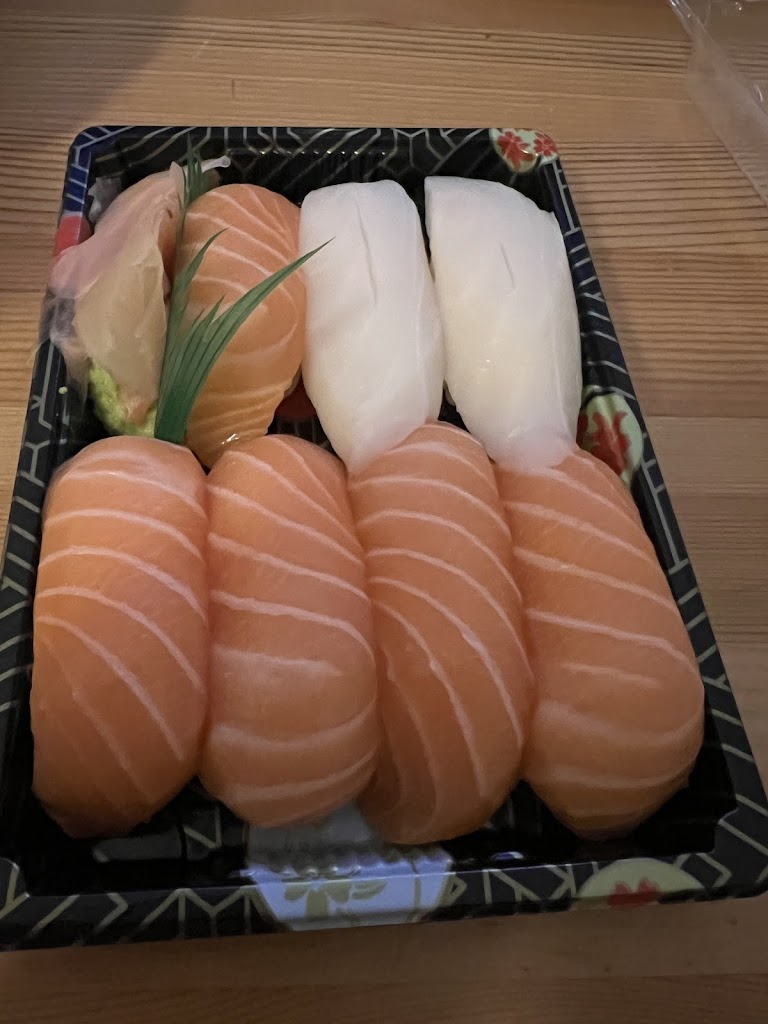 Sushi and Chinese cuisine are good choices, both dine in and take out options are available