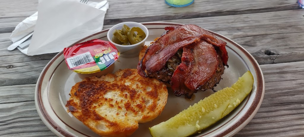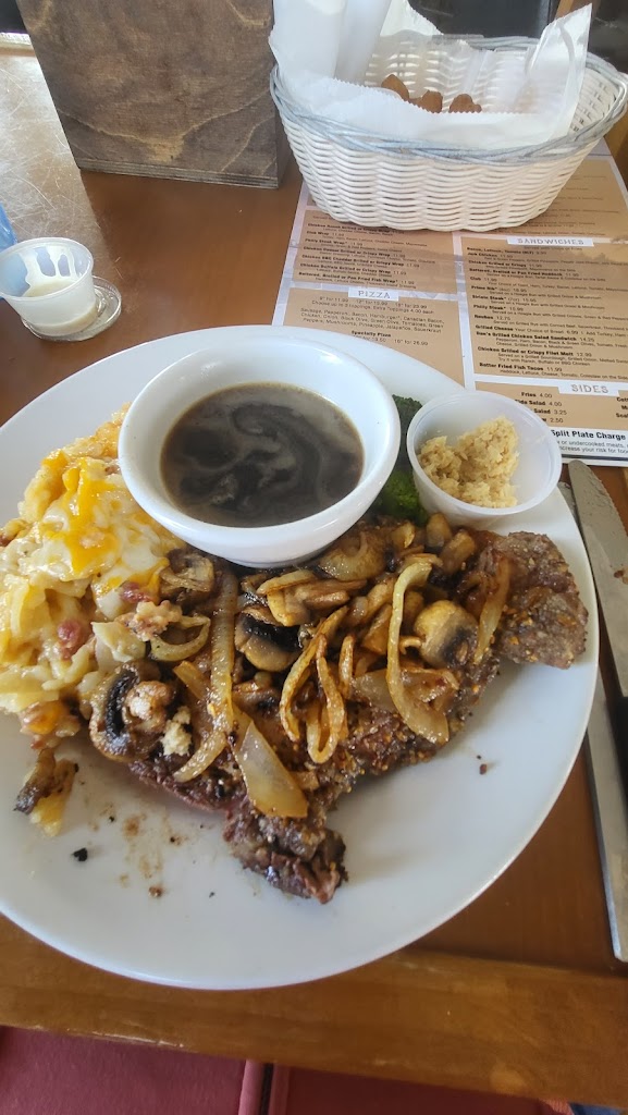 We stopped for drinks but will def return, the menu looks amazing! Prime rib on menu everyday! Homemade pizza, lots of burgers and sandwiches. Broasted chicken and a great deck overlooking the river! Nice friendly service too!