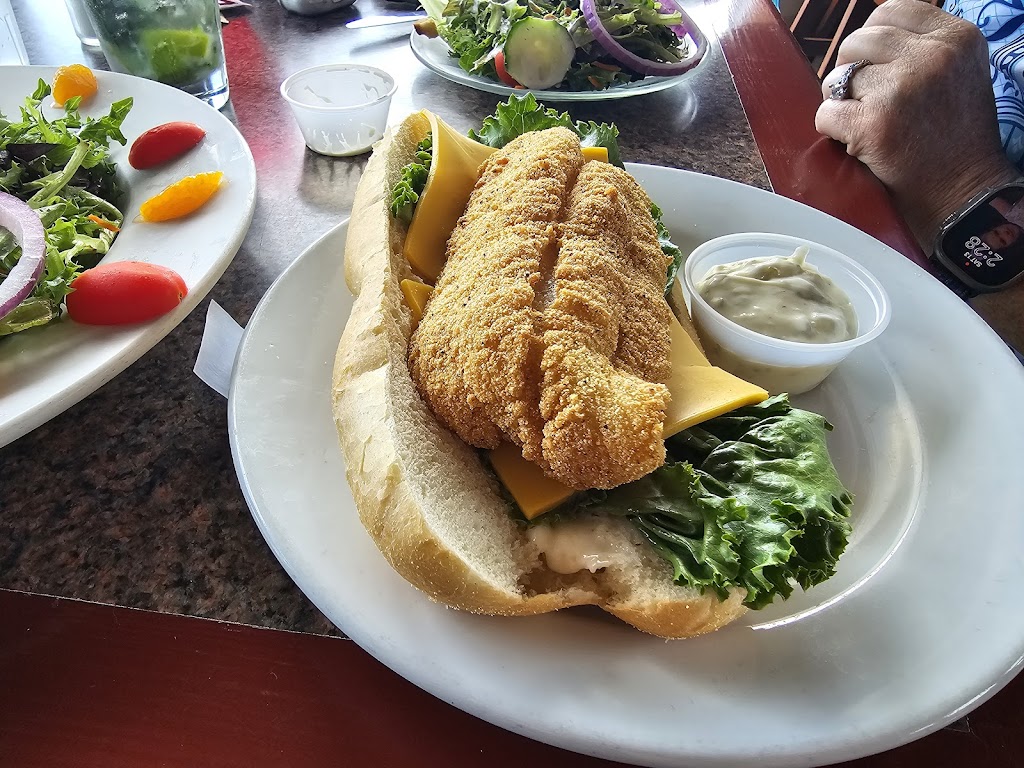 Service was good. I had to wait about 15 minutes for a fish sandwich which is not a big deal unless your piece of fish wouldn't fill have of your sandwich 🤔. Maybe they're running out of fish or maybe the hoagie was too big 🙄. Good thing I ordered appetizer so I didn't stay hungry. Not a very good first experience.