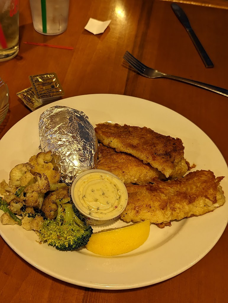 My wife and daughter had the 3 piece fish and I had mine blackened. Nothing to say but amazing and piping hot. Great job and Evylan are waitress did an awesome job just like the last time we were there . Great atmosphere