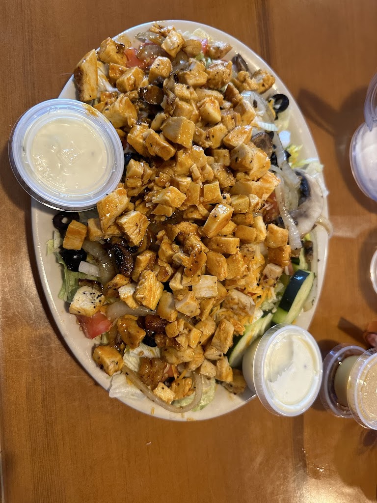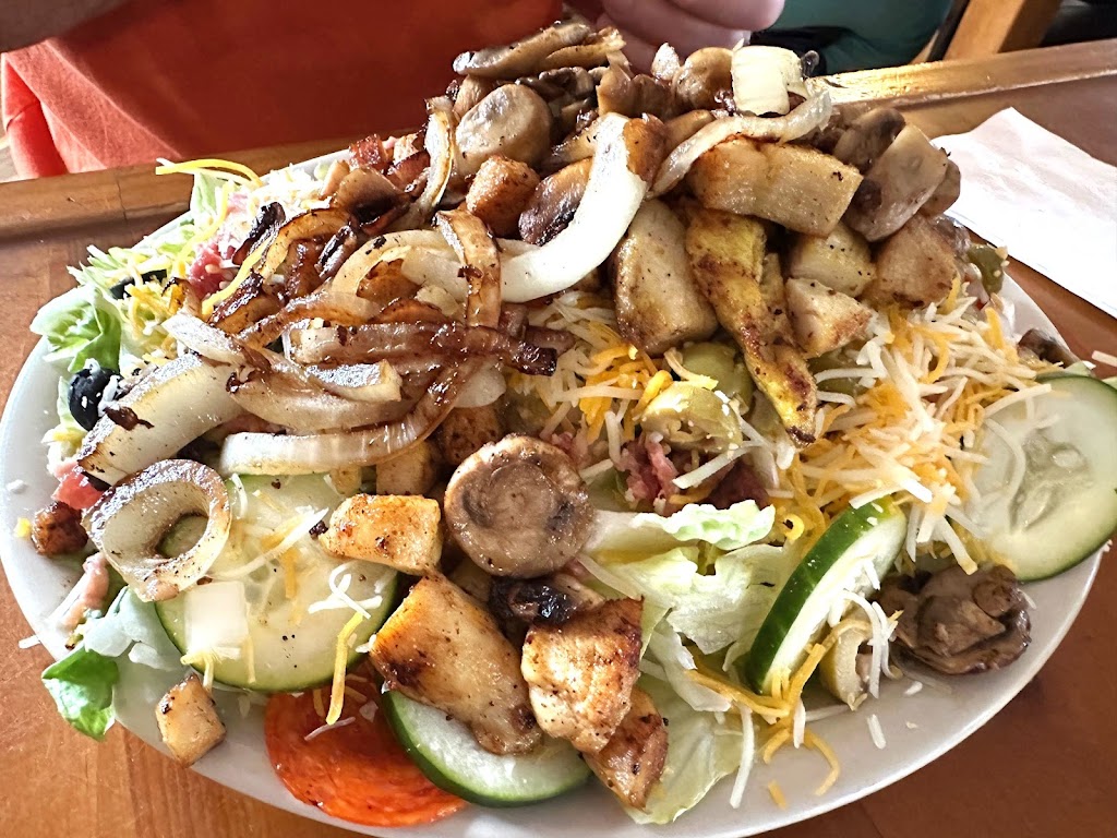 The grilled chicken salad is amazing!! It is such a huge serving that my daughter and I split one, and it's still two full plates! $15.50 I believe. Great service, great friendly owner! Highly recommend