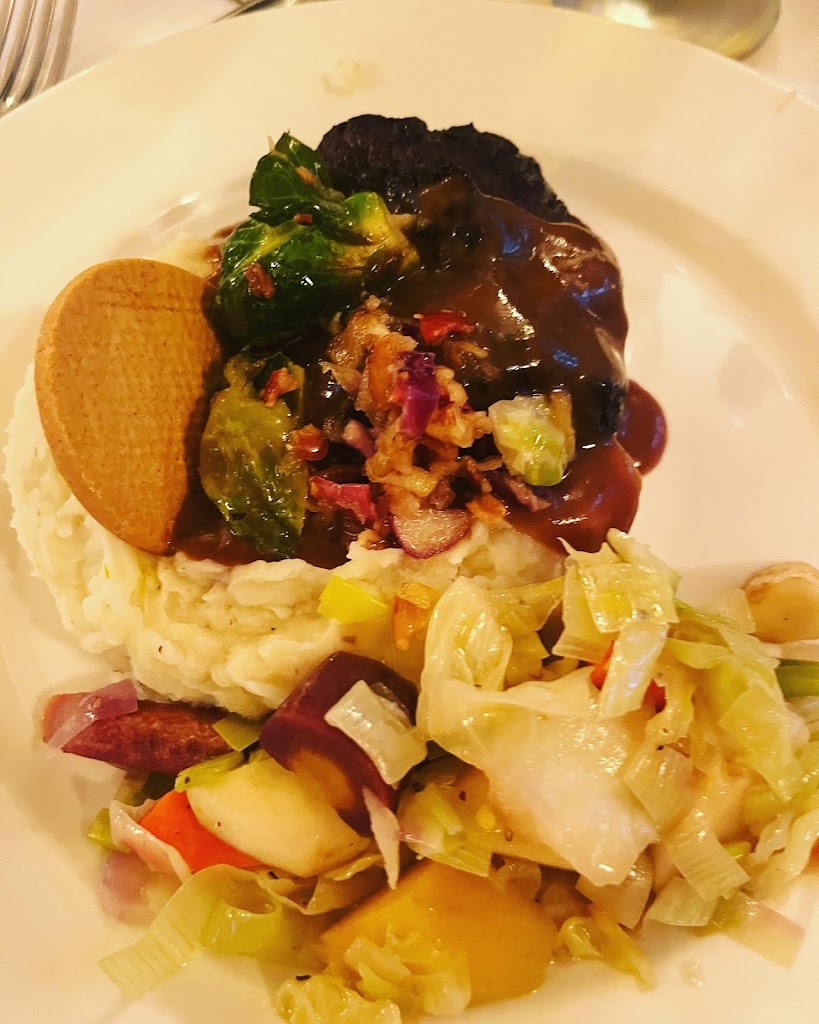Had your food on the east Troy electric train. Can say enough favorable. The Saurcrout was very good. High pork chop with potatoes and pees and carrots. The desert was mini apple turnovers that were great. And the servers were great also