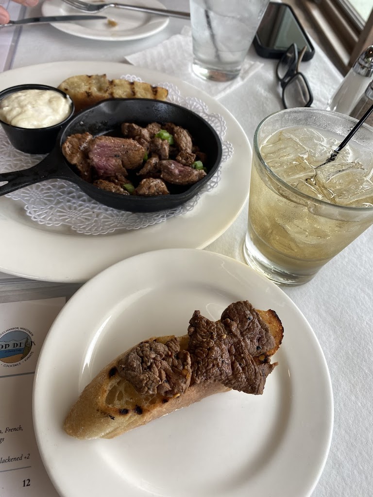 One of our “go to” restaurants in Door County. We had Jambalaya and Chicken ‘n Dumplings tonight… Delicious as always. Our server was terrific too! Although we were too early for the sunset, the view never disappoints! We’ll be back again, again and again 😊 P.S. Bring back the cornbread and honey!
