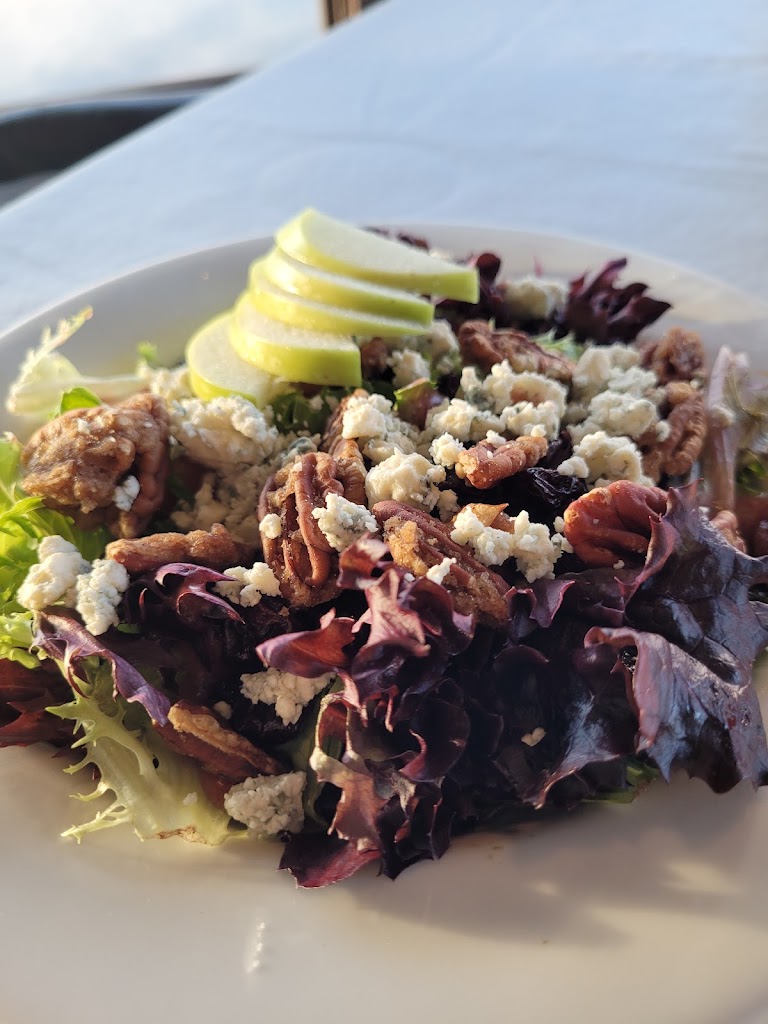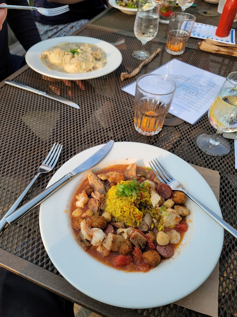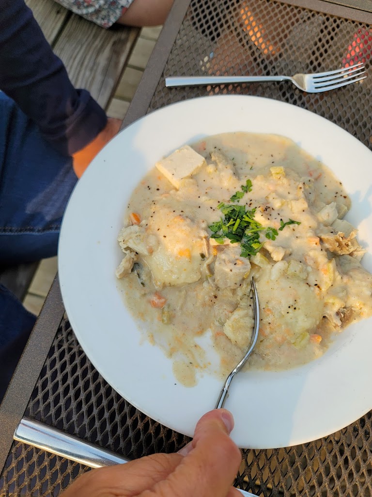Server did not tell us specials, so I completely missed some great options. Ordered the chicken and dumplings to see that it is three huge dumplings with *maybe* a half cup of broth/cut up chicken. So if that’s your thing, I’d suggest it. Other food was good. Surprisingly so, considering the place is basically a big bar with a couple tables. Great views.