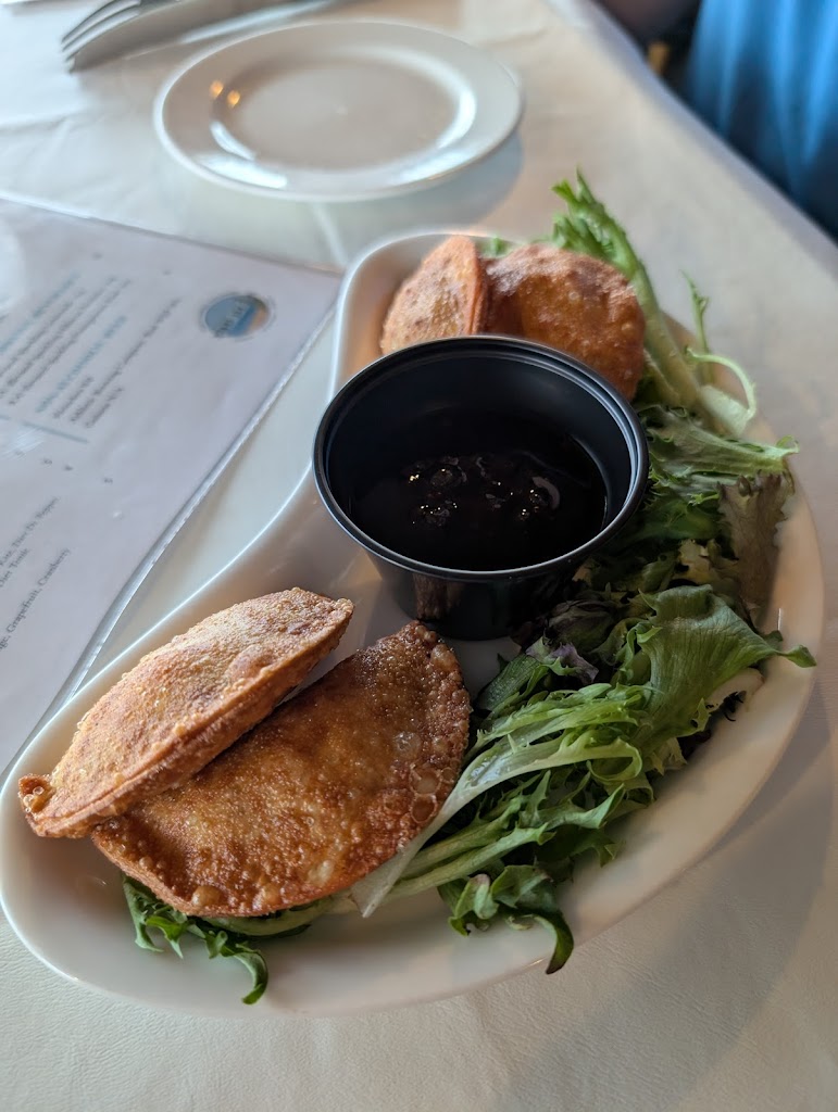 The view was wonderful. The food was okay. The service was adequate. I ordered the pot stickers. They were luke warm and they needed the accompanying sauces for flavor. I started with the beet salad, which was quite good. My companion also ordered the beet salad and also liked it. For her entre' she had the rib eye. She loved it. I thought the potatoes and veg that accompanied her steak lacked imagination, but she seemed to enjoy them. Our server was obviously inexperienced and was slow in delivering drinks and performing table checks.