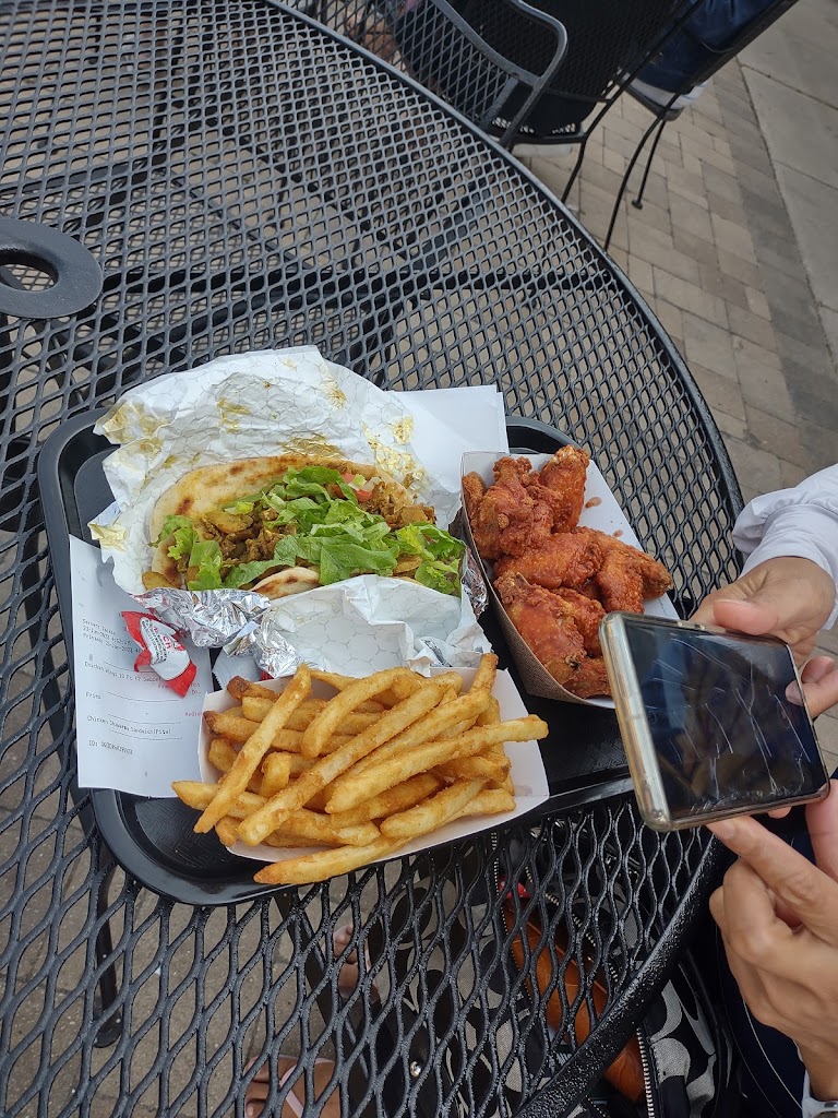 Food was excellent. We had shawarma and falafel. Both could have used more sauce but flavors were great. Outdoor seating was nice and enough for us and others. Could use umbrella on the table but good overall.