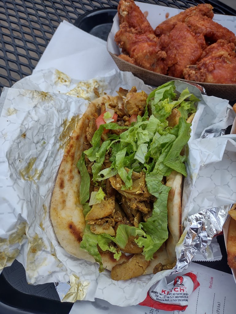 Excellent gluten free options including, fried chicken sandwich, French fries and falafel. Even their gyro meat is gluten free which is so rare! I had the gluten free crispy chicken wrap with garlic sauce which was excellent. My husband got the chicken shawarma which he didn’t like. He was thinking Greek grilled chicken. But I’d say it was very good shawarma just not a flavor he likes and ordered in error picturing something else. He said the pita was great though and wants to go back and order the right thing! We’ll be back with our kids in summer who will be big fans!