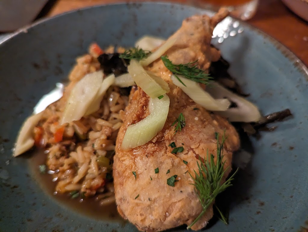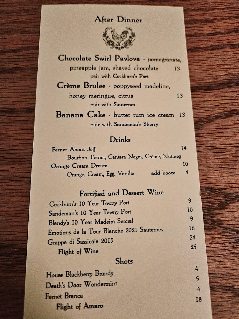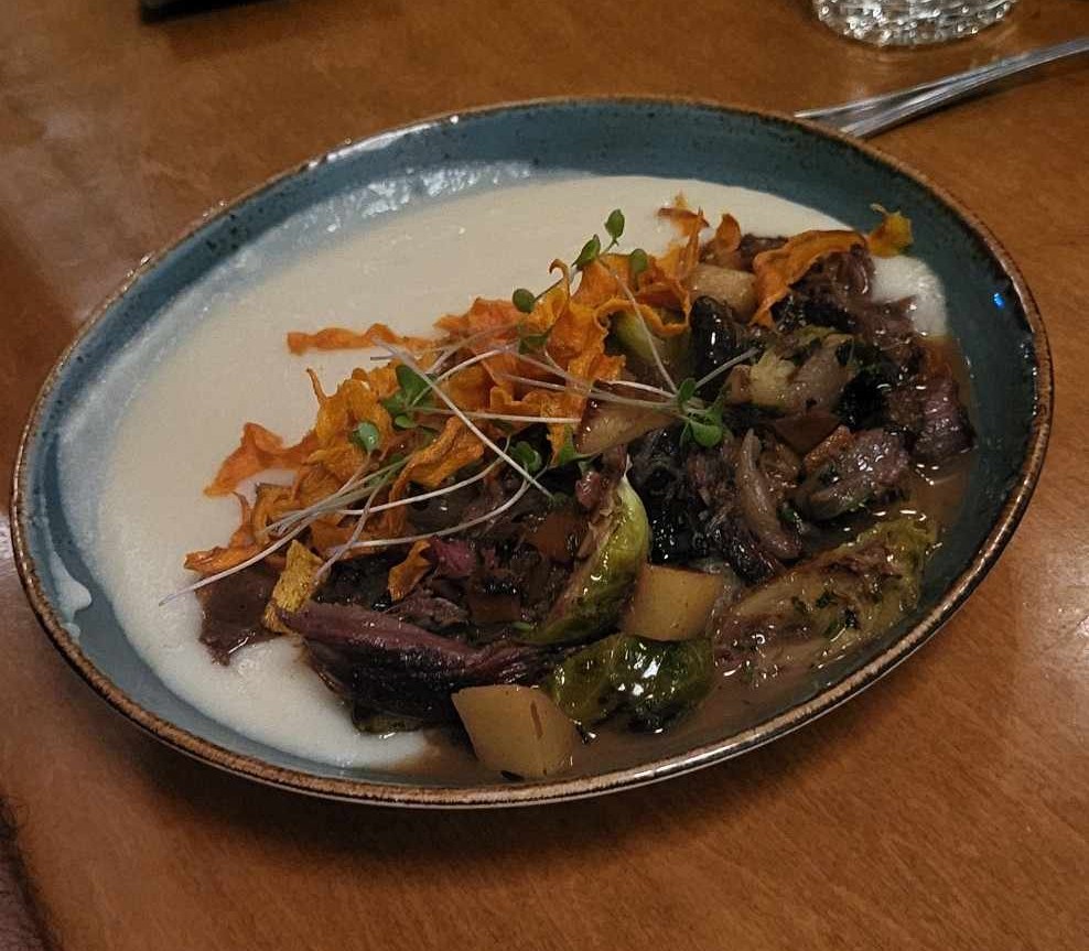 Fantastic world class locally sourced food made from scratch perfect for the adventurous. Not the place for the steak and fried food crowd. Our dinners were some of the best food my wife and I have had anywhere in the world(and I’m not kidding). Vegetarian options are always available, my wife had an incredible Green Goddess salad unlike anything she’d ever had. The Morel special I ordered was so unbelievable I refused to given up my plate until bread was somehow found to allow me to mop up the sauce. Extensive drink menu and unique desserts.