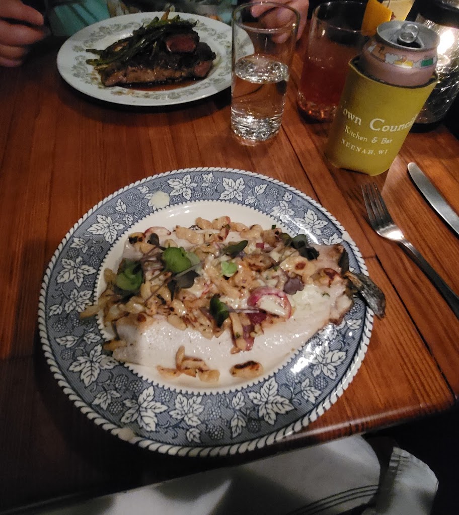 The food and beer selections were great. Everything is freshly cooked in front of you, if you sit at the bar. The hours are basically dinner only which is unfortunate since we've lived in the area for over 2 years and this finally happened to work out. If you plan out your dinner correctly you'll get an awesome 4 course meal. It's a bit pricey compared to other places in downtown neenah, but totally worth it. This is some of the best food I've had in a long time. 10/10 would recommend. I don't usually get fish dinning out, but everything was so good I'm tempted to go back and try the trout, as there is no way it could taste bad here!