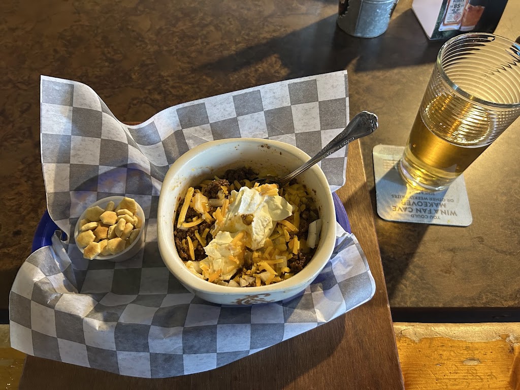 because i am a huge burger lover, i had "The Classic Big Wally Burger" and was very pleased and impressed with this burger. i will be back for sure! i highly recommend this bar/grill not only for their food but because they play ROCK & ROLL!!! Thank You! The picture is a bowl of their Cincinnati Skyline chili. I tried it and highly recommend.