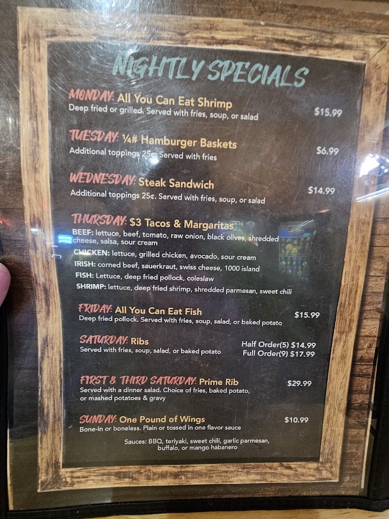 This place is a hidden gem. We were headed to Drummond to go camping Friday night and stopped on the way. Fish Fry was the best I've ever had, and we hit everywhere during Lent. Atmosphere was upbeat and these servers were serving and bartending and running food and were absolutely great. I never leave reviews, but I've worked in the restaurant industry for 20+ years and when it's good. It's worth mentioning and it was. All around.