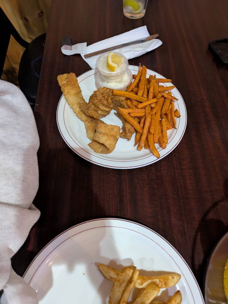 Friday fish fry. Great. Light breading. Lots of people so a bit loud.