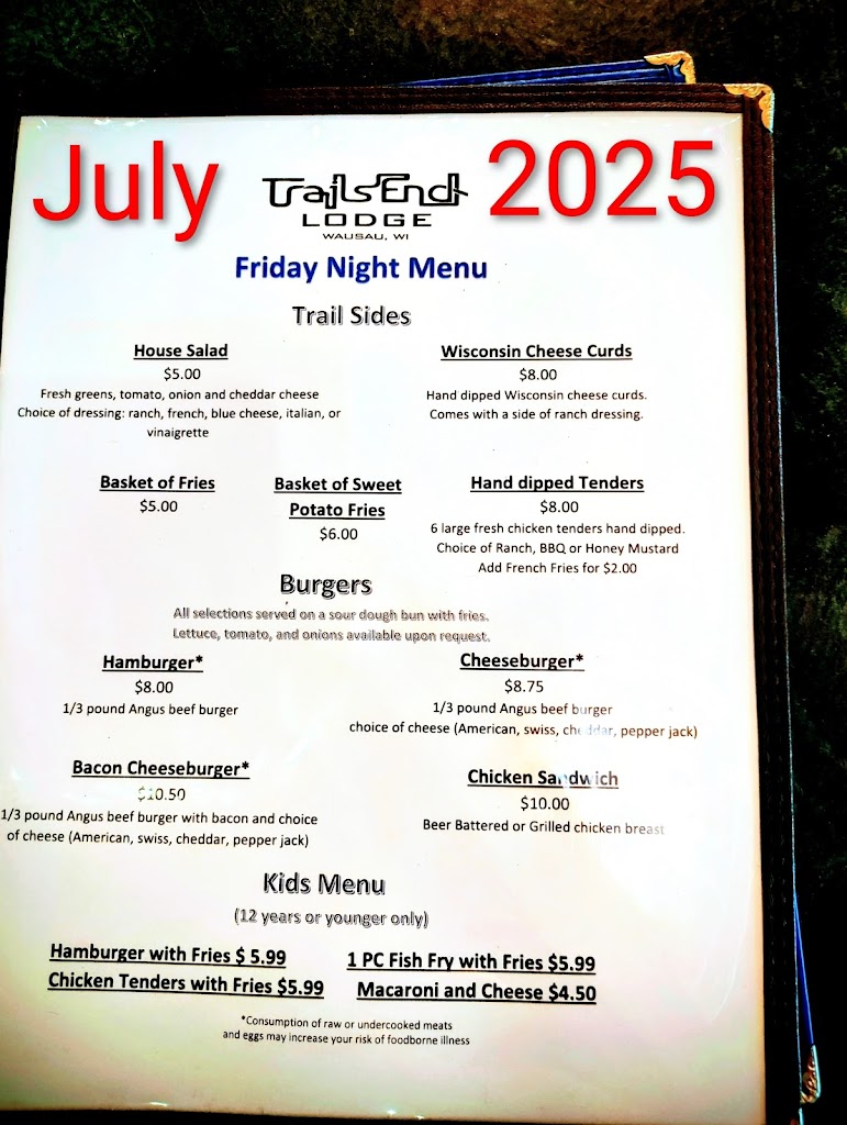 My favorite place to have Friday night fish frys! Trails end goes above and beyond to provide the best costumer service to everyone! Mark and Daphne have been extremely kind and helpful every time I go there!