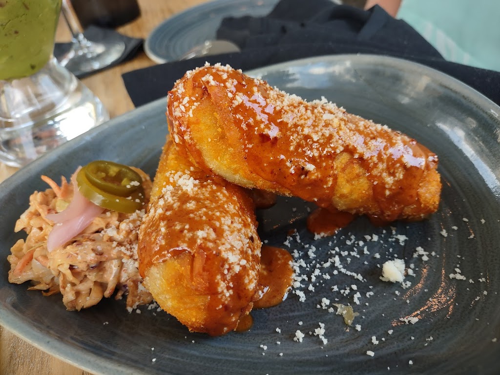 Let me start off with that we really wanted to love this restaurant because we live near by & usually LOVE Latin food...but my husband & I discussed it afterwards and the quality just doesn't justify the price at all. He ordered the Million Dollar Prime Rib (12oz) & I ordered the Chicken Street Corn Risotto (after the waitress said it sold well & was VERY good). We also started with 4 Beef Birria Masa Azul Chochoyotes because they were labeled as some sort of award winner. For $3 a pop, the beef birria dumplings were sad & not even hot - I'd say barely warm. The first one was rock hard & I felt like I was chewing a thick, burnt tortilla. Thankfully the other 3 were soft (seemed like the first 1 got fried twice maybe?!), but still lacked flavor & to me just reminded me of frozen pizza rolls. They were also TINY for $3 each. Like 2 inches long each? $12 for 4 bites basically lol. To be fair, the coleslaw & pickled onions they paired with it were really good. When it came to the entrees it was a similar deal - the food came out pretty quickly but again, not hot? I'm not sure how that's possible. My husband's prime rib was good & the au jus was intriguing, but the only side that came with the $40 prime rib was a small spiralled, COLD, fried potato. I don't think either of us have ever had a steak of that price not come with a side of veggies along with a hefty hot potato or something (think Palmer's Steakhouse in Hartland). My Chicken Street Corn Risotto *looked* pretty, but was pretty darn tasteless aside from the two sauces whipped over it. I was very disappointed because usually any risotto dish is to die for (in my experience lol). Risotto generally maintains heat well so I was surprised when both it & the chicken breast were barely warm. The chicken itself didn't have flavor & wasn't much of a portion. I don't eat THAT much ya'll, and I was still begging for bites from my husband's prime rib lol.