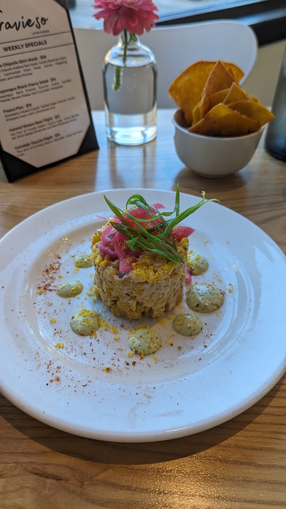 Made a reservation for Saturday night. The hostess was absolutely wonderful and the stand out star of the night. Our waitress was sweet but only checked the table once to see if the food was good after not delivering it herself. The espresso martini tasted like I was eating ground up coffee beans, I couldn’t even finish it. It ended up separating before the entrees came out and made it look like oil and water. The other drinks on the menu looked amazing so next time I would stick to the margaritas or mules. I ordered two appetizers- the octopus and the street corn. The octopus was warm and the corn was cold, I think the dishes would’ve been better if that was flipped. The octopus was a little chewy and was drowned out amongst the spices. It almost tasted muddy which ruined the dish for me. It was over powered by over seasoning which made the dish lose any sort of coherent flavor. The corn was average but beautifully presented. For entrees I ordered the skirt steak and the scallops. The steak was served standard medium rare yet it was more medium well done. I found the steak to be incredibly chewy and tough but the potatoes and green beans were okay. The scallops were served over braised pork belly accompanied by pickled onions, carrots and what tasted like kimchi. It felt like Mexico met Asian fusion and not in a good way. The scallops themselves were well cooked just over seasoned and slightly too salty. The entire entree felt like it was too much- the pork kimchi and vegetables on their own would’ve been amazing but adding the scallops and aioli turned it into a mess of flavors that contradicted themselves. The brussel sprouts served with the dish were charred to a point of what I would call burnt. I was unable to chew or swallow them. I didn’t try any dessert however the table next to me was enjoying a Brazilian cheesecake. Overall the ambiance and service was good but the food didn’t hit its mark for me. I think I’ll give Travieso another chance later this year before I make my final judgement but for now everything about it falls just about average for me.