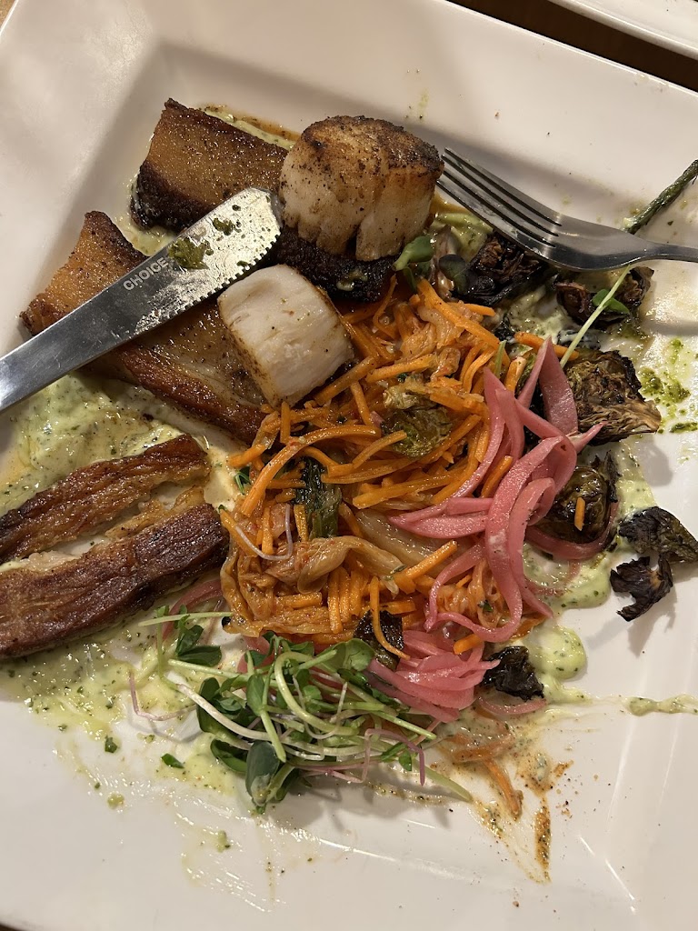 First time here and I will be back. From the beautiful and tasty drinks at the bar, to the friendly banter and guidance of our server, to the other team members walking around and assisting, this was a great experience. Such a variety of food and every plate looked like a masterpiece. I appreciated our server bringing over small plates with the entrees that we ordered so we could all try each others' dishes. Really good food and can't wait to try more.