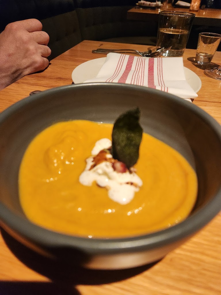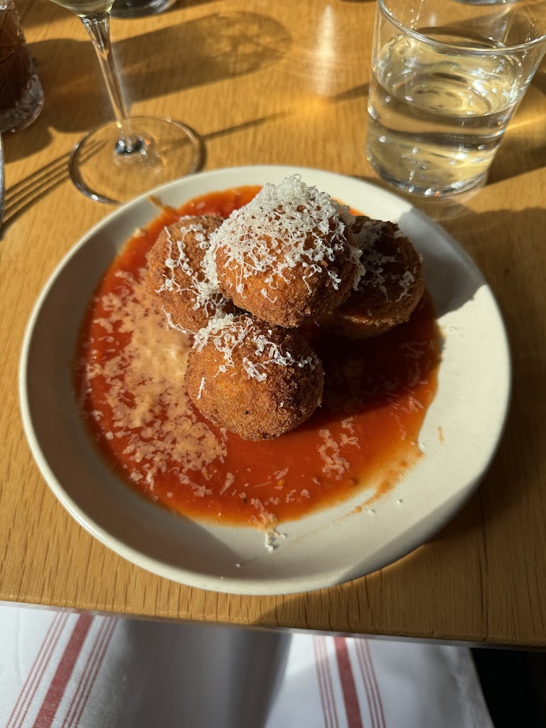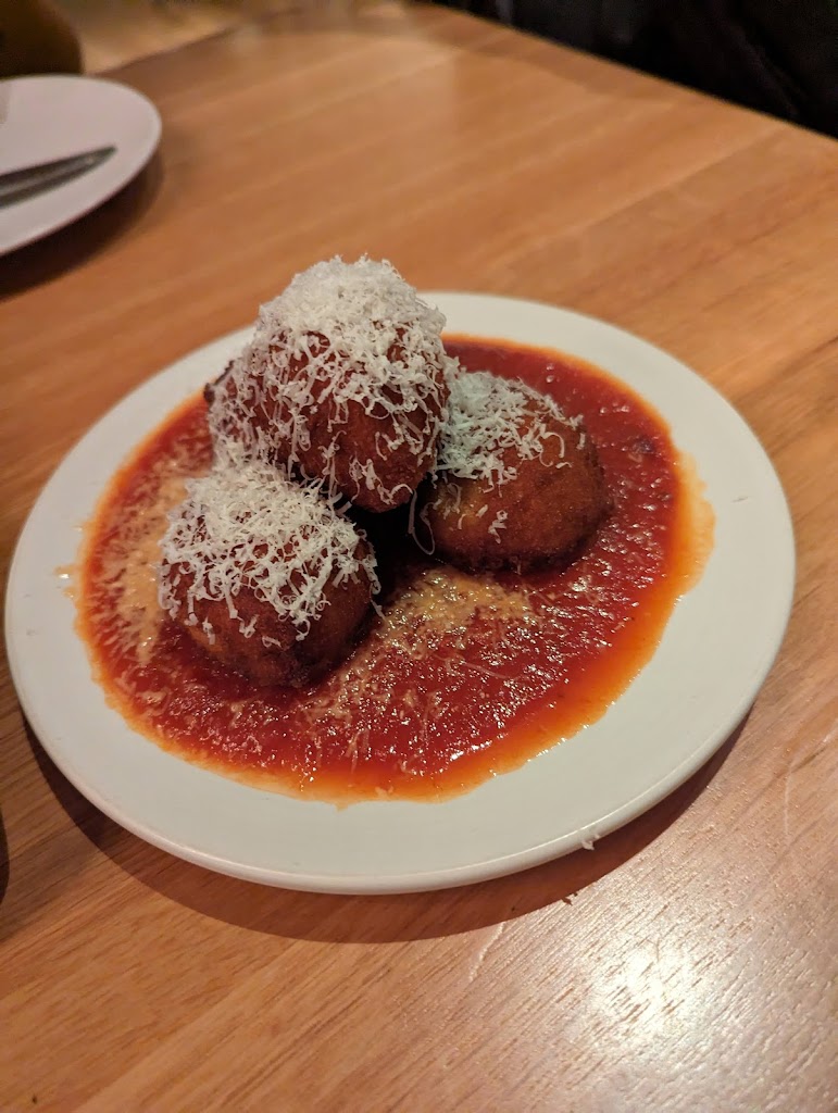 The first dinner started with chickpea soup and lentils, which set the tone in the blandest way possible. No bold flavors, no depth, nothing memorable. The polenta rice balls, which are usually my favorite dish at a Seattle spot I love, were equally underwhelming here — flat, flavorless, and uninspired. Service didn’t help: the bartender was so locked into one conversation that I felt neglected, almost invisible.