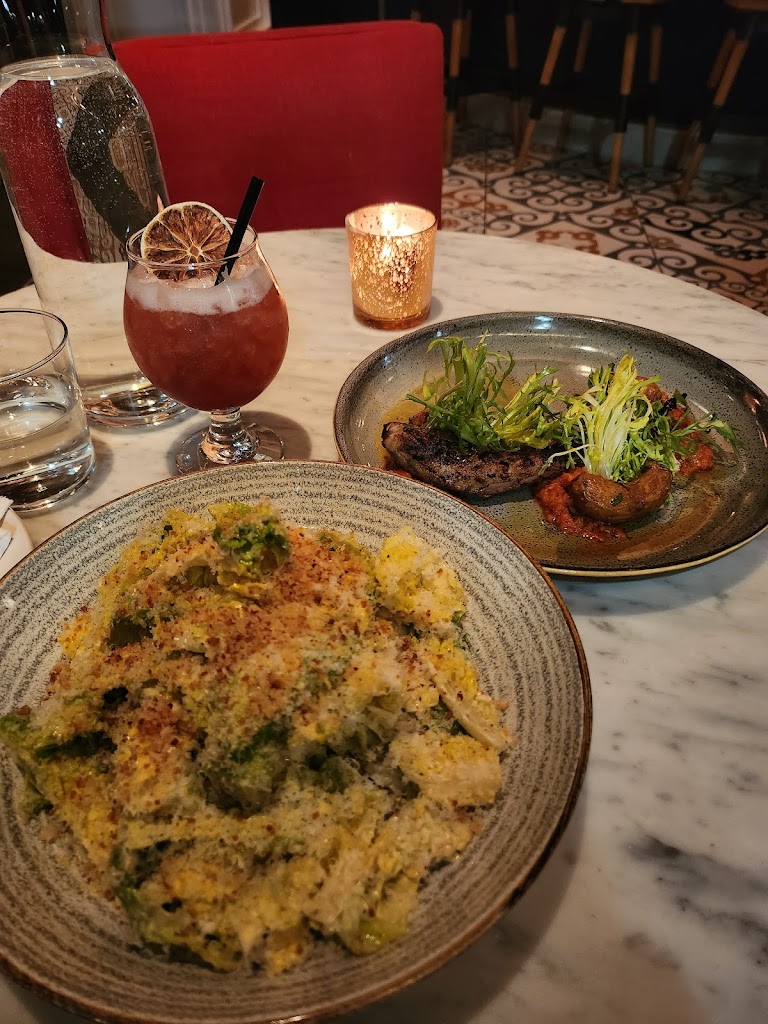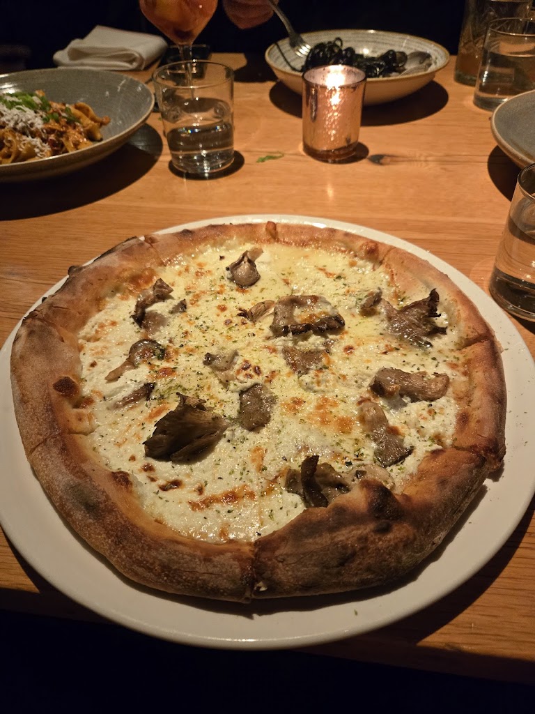 The restaurant was gorgeous, the hostess was welcoming, and the server did a good job. But the food was mid-we had several appetizers, and the servings were so small it made them hard to share with the table. The pasta didn't have any flavor and I actually took the pizza home to add spices. I have no complaints about the service, but in general the staff seemed unhappy. It could have been a rough night, but as a former hospitality worker, points to management or work culture in my opinion.