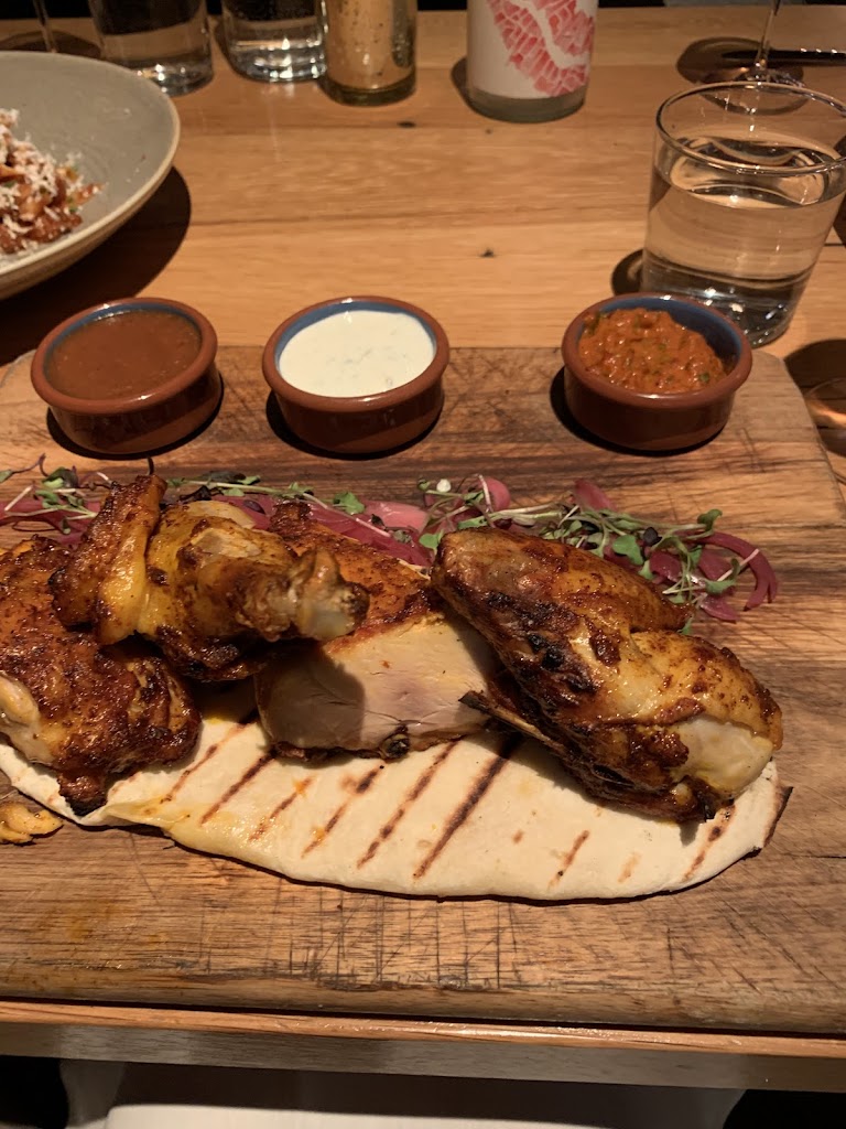 We had the private property rose which was very good, meatballs were pretty good, falafel was a little dry but good, hummus and pita was fantastic, gnocchi and pappardelle were both fantastic as well. The only disappointing dish was the chicken (pictured.) The flavor and sauces were pretty good but the presentation just wasn’t what I expected.