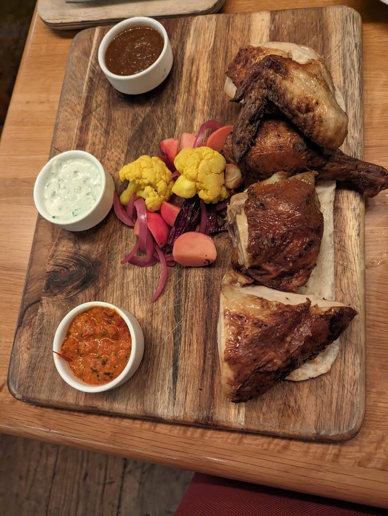 Food-was good. A bit overpriced though. Portion sizes were small compared to price.