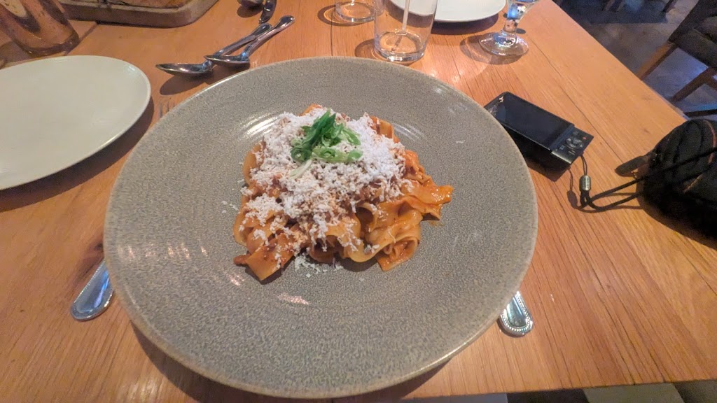 Food overall was good- Parpadalle was basic but well done, portion a little small. The roasted half chicken had lots of good flavor. Outside patio was nice, service was a little slow/innatentive.