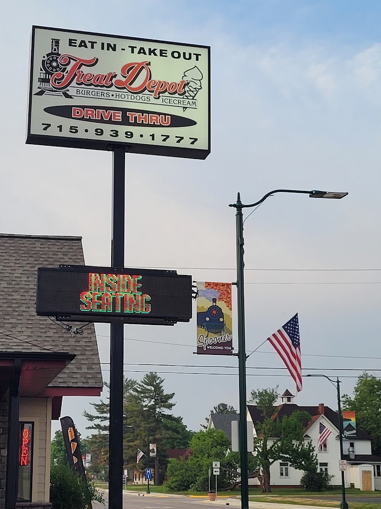 Traveling through town and wanted to get something different than the usual old McDs when traveling. It's usually easy to order, kids don't fight, and you know what to expect. However getting a little tired of it, and the last few times we have done curbside in smaller towns, we have had to go in to get the food, and it isn't very fresh. I know Treat Depot had a few up and down reviews, but it had a drive thru, so that helped. Kids were not thrilled about it.