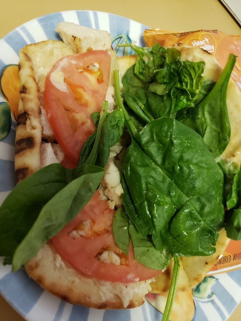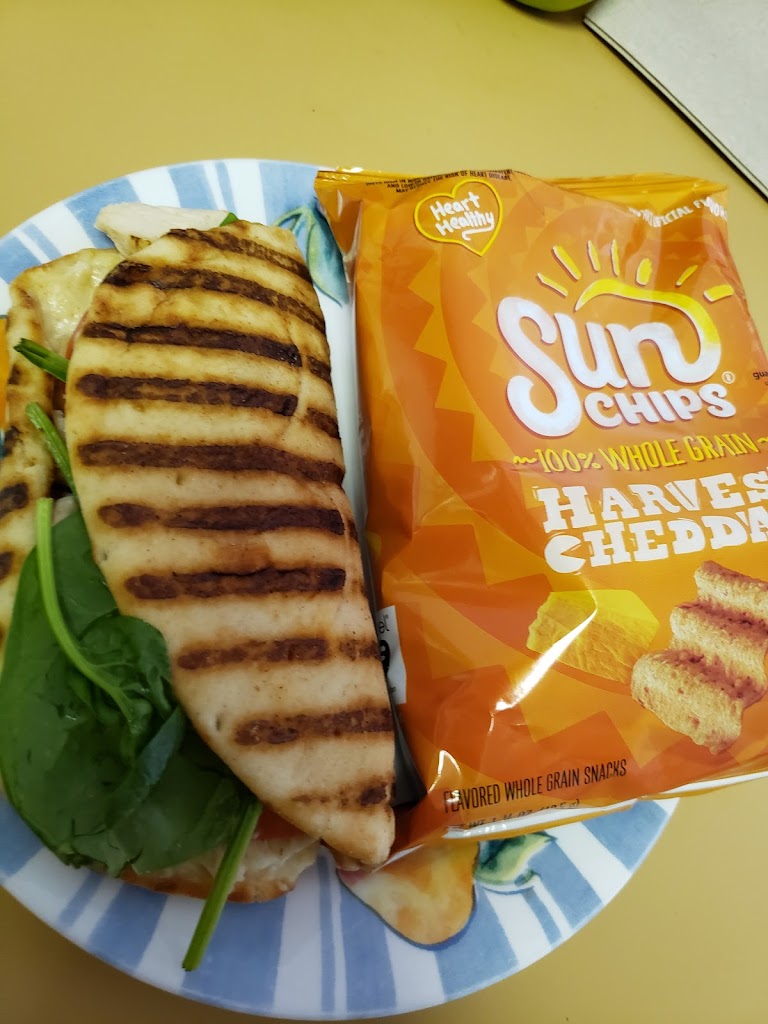 May favorite quick snack or lunch for work! Bahama Mama with a chipotle flat bread Sammie is PERFECTLY filling