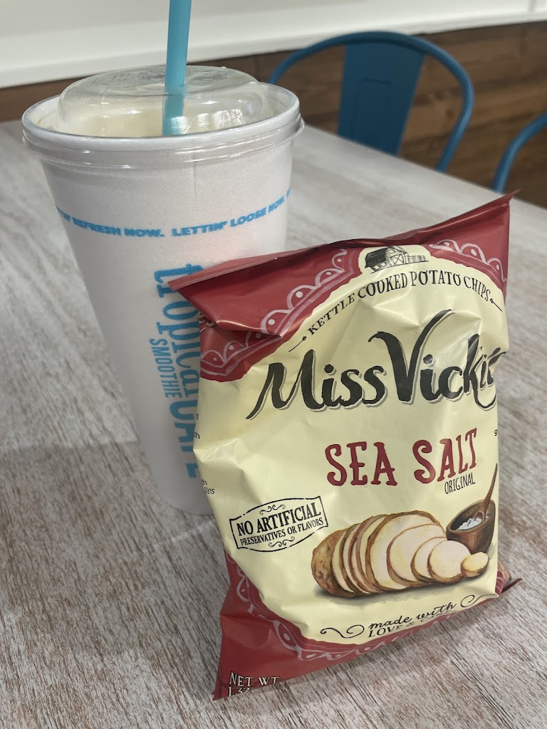 Great atmosphere and really kind workers! I got the chia banana boost with strawberries and I also got a Baja chicken wrap with chips. The smoothie was ok, a little bland but not terrible. The wrap was pretty good. Loved the pickled onions in it! For $13 you can’t beat the price. Overall great prices, great service and decent food.