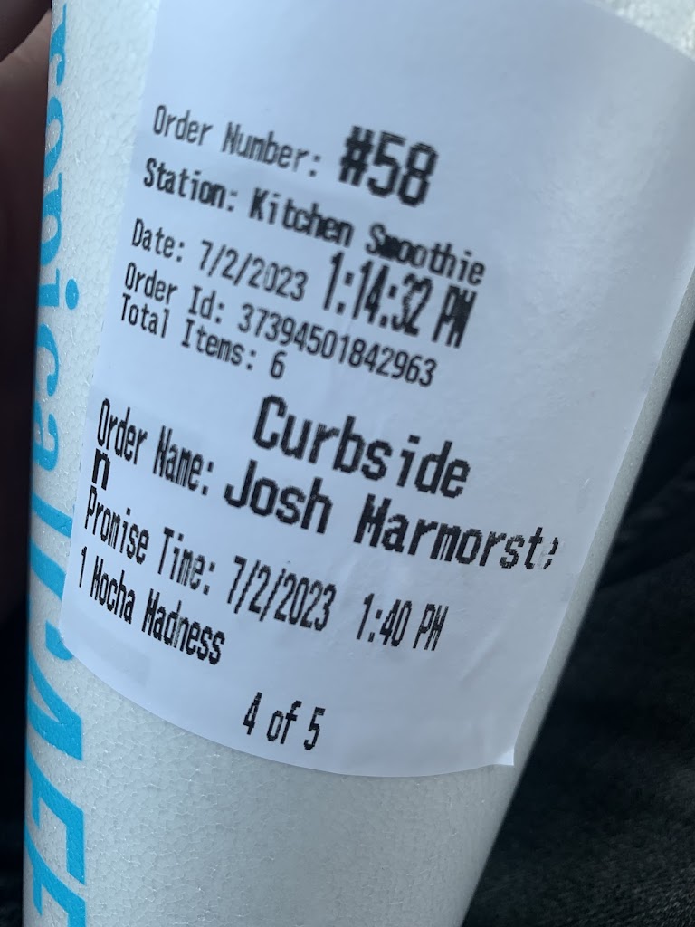 The online ordering app is a great feature. Customizable sugar level, ingredient substitution and rewards points are the best parts of ordering online. My only qualm is that I wish the cups were more eco friendly. If they were compostable I'd be getting a smoothie every morning for breakfast!