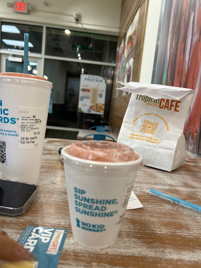 Tropical Smoothie Cafe® was born on a beach® and on that beach, we learned a better way to live. We make eating better easy breezy with fresh, made to order smoothies, wraps, flatbreads and bowls that instantly boost your mood. Experience the good vibes of the tropics whether you’re ordering ahead in our app or online for delivery, curbside* or pickup. It’s like a tiny vacay in the middle of your day. You're on Tropic Time Now®. *At participating locations.