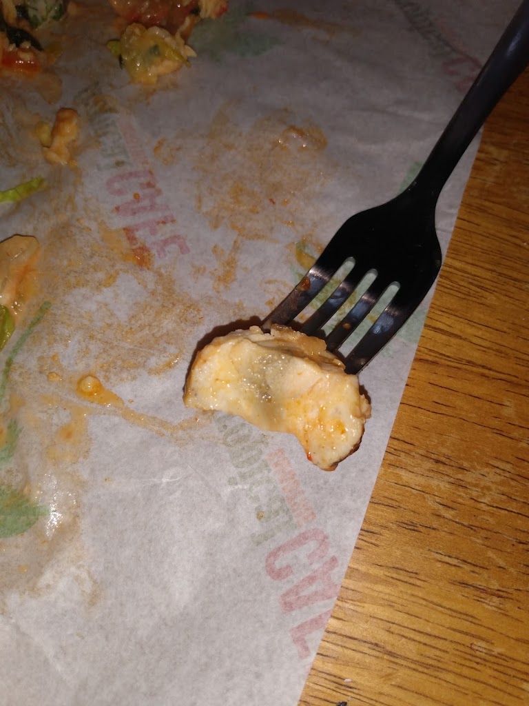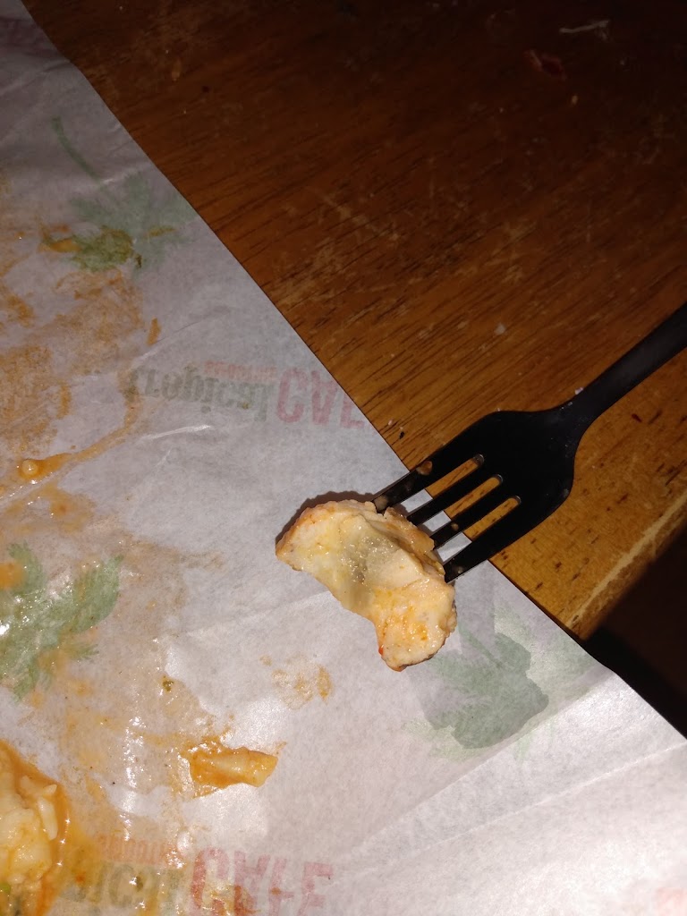 I ordered buffalo chicken wraps today and 2 of the 3 tasted "off". So, I opened mine up, only to find mold on my chicken. This isn't a blood vessel or the fake grill marks they have on it normally. It is definitely mold. I won't be ordering from here again.