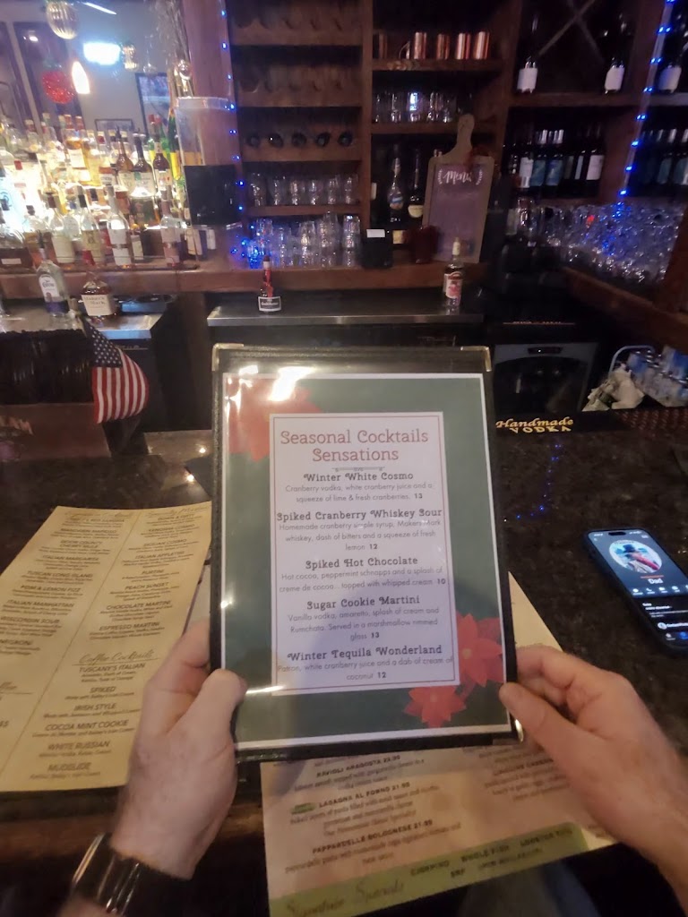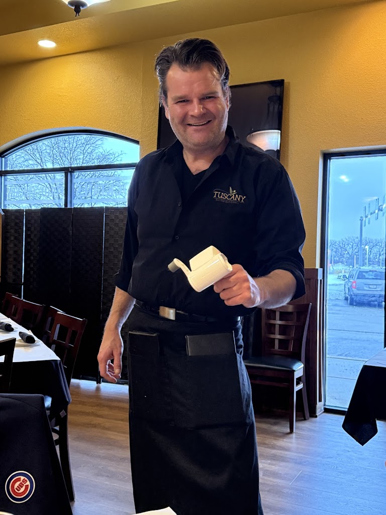A friend and I went to Tuscany Bistro on a Saturday night and we were pleased from the start! We were originally sitting next to a 5 top circular table with loud and disrespectful people. We told our waiter Brandon (Who was amazing!) that we didn't enjoy where we were sitting. Brandon then told the host Frankie who found a new table right away and was very patient and moved all of are belongings for us and made are night at Tuscany excellent! We will definitely return soon!