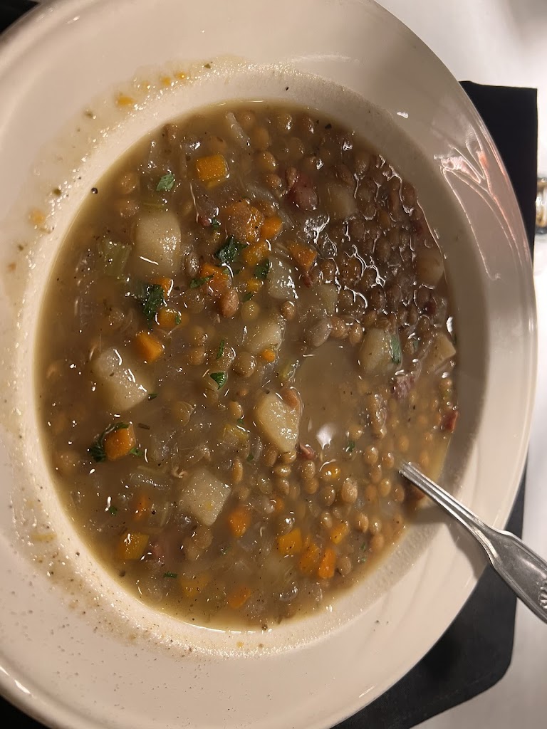 Lentil soup was 100 out of 100. Bread was hard and stale they served with dinner. Olive oil and garlic a seasoning with it was great. Bolognese had great noodles but sauce lacked flavor and was to thin. Overall good food but seems to be hit or miss most times I go. They are content on being a good restaurant not a great one. Service was exceptional so they have that down. busboys and waiter Brandon were on point. Ambience is ok. Prices reasonable.