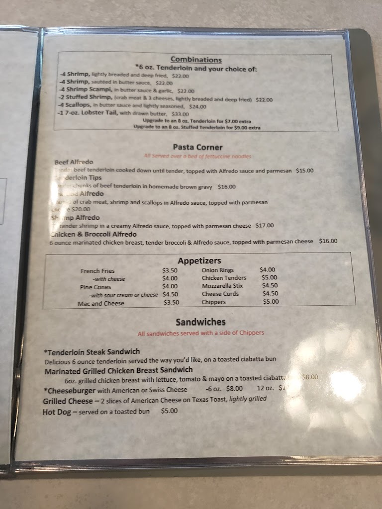 Ate dinner here one night. I had the loaded filet. OMG it was delicious. My son has beef tips? He loved his. His gf had shrimp alfredo & she loved hers! I recommend the food highly. We tried to get into Renes Supper Club but it was a two hour wait. Service was good drinks were good!! We'll be back