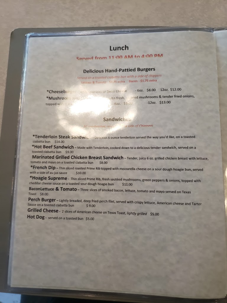 Best perch I have ever had! Light breading and melt in your mouth. Stuffed Sirloin looked absolutely amazing! Order either and you won't be sorry
