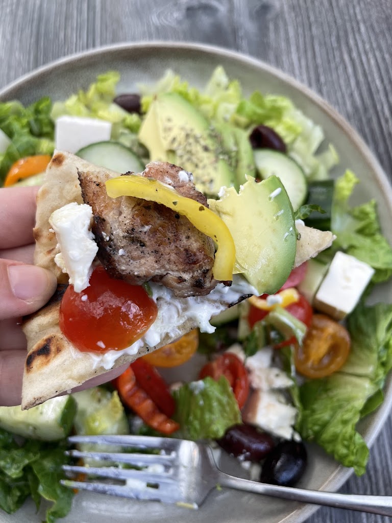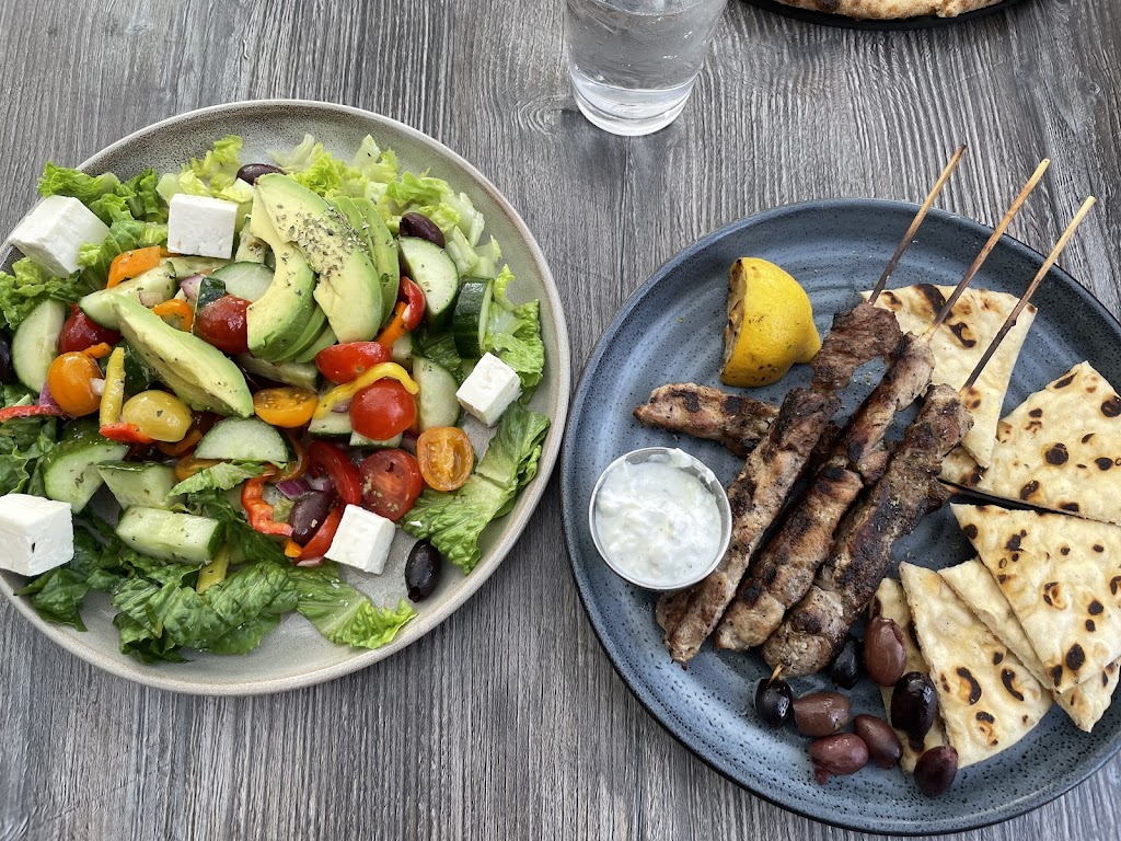My husband and I love this place. I’ve tried several things on the menu, but keep coming back to these two: the Souvlaki and the Avocado Feta Salad. I get both and then make perfect little bites on the pita bread with some tzatziki. The flavor combo of these two dishes is INCREDIBLE.