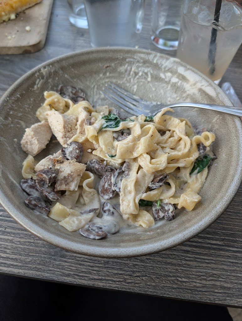 The food is unique but my experiences with the pasta is that it's bland. The ingredients are great! Just not seasoned. The tables inside were bare, no salt & pepper, no condiments unless you ask for them. The drinks are really good! Atmosphere is good. The patio is beautiful and quaint. I absolutely LOVE that there is a steak option on the kids menu! Steak is my daughter's favorite food! And it's not chicken nuggets!!! Thank you for having steak at a great price on the kids menu! ❤️❤️❤️🙌🏼🙌🏼