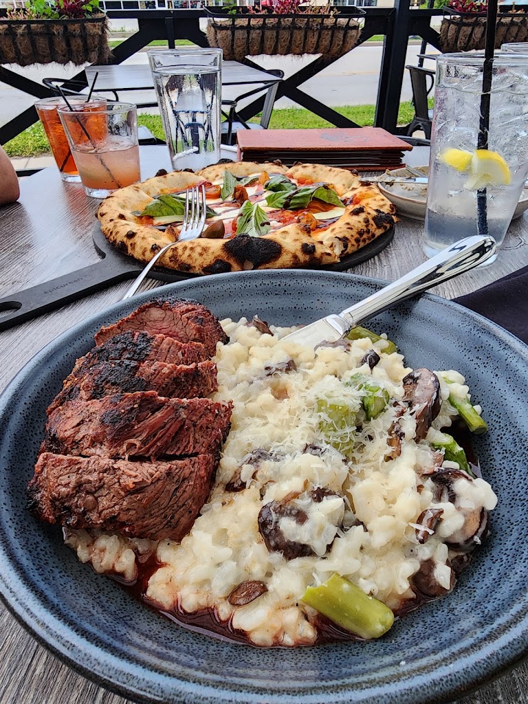 The server was MIA, steak was dry as a bone, Risotto was subpar (made with water most likely and severely lacked flavor).
