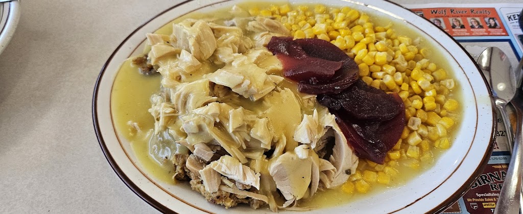 The hot turkey sandwich, mushroom Swiss burger and liver and onions were good.